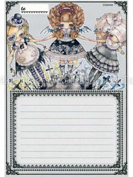 Stationery set featuring "Negaholic" by Tama. Three girls dressed up in their gothic lolita best surrounded by crosses and vines.