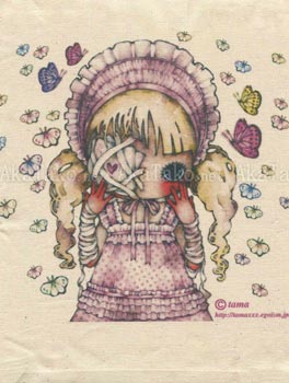 A sweet little reusable eco-bag from Tama features "Longing Energy". Butterflies can't resist this cute girl dressed in a pink ruffled dress with a matching bonnet. Let her lighten your load whenever you need help.
