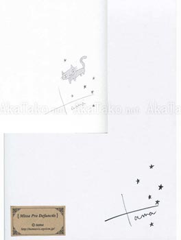 SIGNED with stars and a little kitty cat on the reverse (inset). Includes a heavy card backing that is SIGNED in black marker with more stars and a title plate. Measures approximately 8.25" x 11.75" (21cm x 29.7cm). Midweight, glossy finish paper. First printed in "Ame Iro Romance" book.