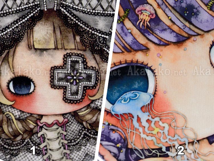 Your choice of two XL buttons / badges featuring a detail of artwork printed in her "Lidocaine Drop" book. Measures approximately 3" (7.5cm) in diameter. Heavy pin back.