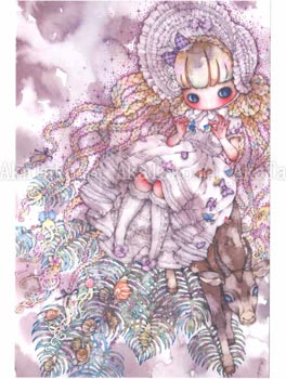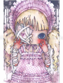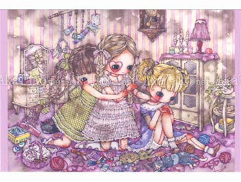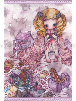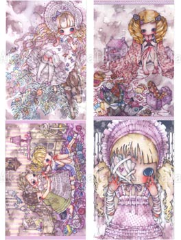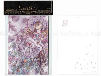Set of four postcards with the cute and dark artwork of Tama. Features four images: Fragment, Never Let Me Go, Chain Girl, and Longing Energy.