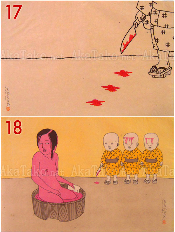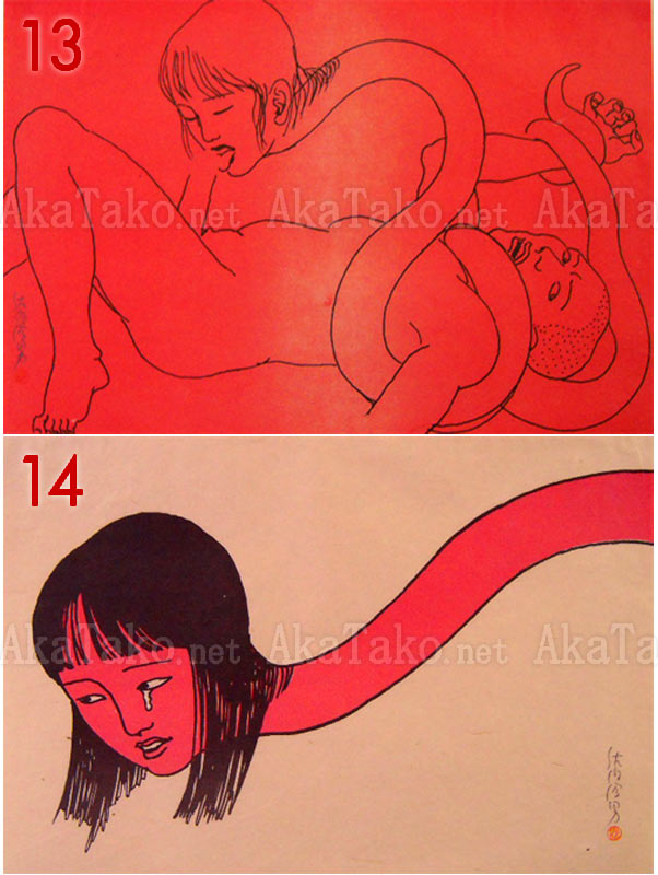Incredibly rare prints from March 15th, 1972, which were originally made for the "Akai Hako" book by Toshio Saeki. Prints are silkscreened on paper. Originally a boxed, limited edition of 50 prints. Only 200 boxed editions were made. This boxed set has been split up and prints are sold individually. A total of 47 prints are available. Photos of the box are available upon request.