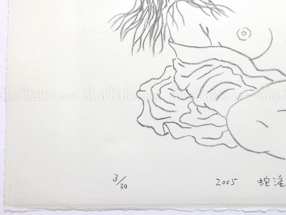 Toshio Saeki limited edition lithograph print was released in 2005 and is an edition of 30 pieces. Hand written in pencil: number 3/30, date, title in Japanese, and SIGNED "To.Saeki" plus red hanko stamp.