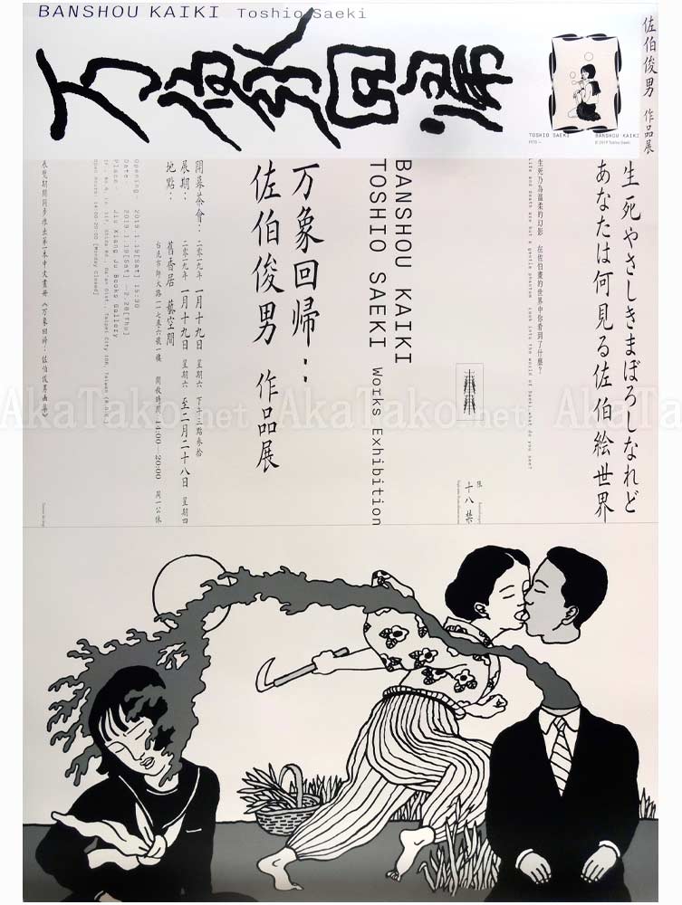 Brand new Toshio Saeki poster issued during the 2019 "Banshou Kaiki" exhibition in Taipei is double sided for extra fun! Reverse is shown in second image.
