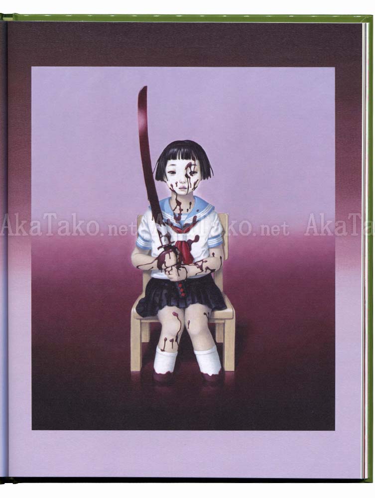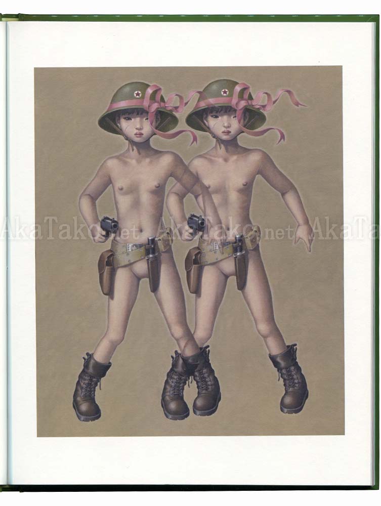 The special edition of Trevor Brown's newest book "Girls War" has a special cover and also includes the mini book! A lovely collection of paintings of little girls indulging in violence. Most of the paintings are either war, military, or violently themed. Additional photos of inside pages at the regular and mini editions.