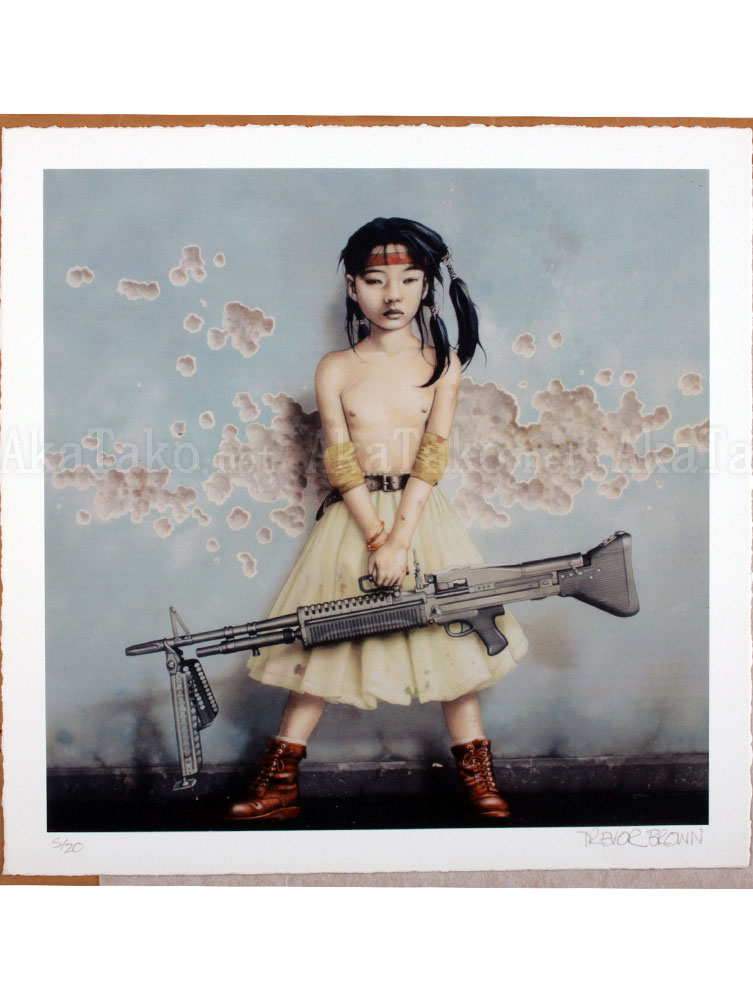 Giclée of "Machine Gun Girl" by Trevor Brown. SIGNED "Trevor Brown" in lower right corner and numbered "5/20" in lower left corner. Originally published in the book Forbidden Fruit.