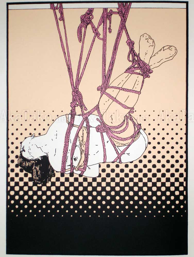 Very large silkscreen printed book is made of heavy weight paper with 28 kinbaku (Japanese rope bondage) prints. Limited edition of 199 pieces - this is 97/199. Staple bound, published by Athanor / Jinx on 240gr. deluxe Rivoli paper.
