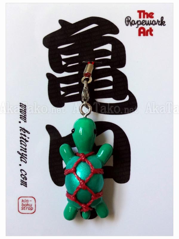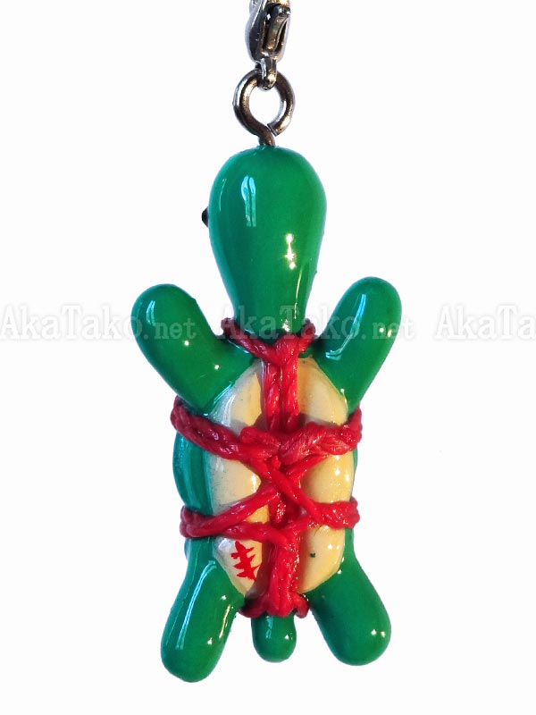 Turtle kinbaku charm. Kinbaku cell phone strap handmade in Japan and signed by the artist (in red on belly). Comes on a paper display card as shown in second photo and has a lobster claw clasp to make attachment easier.